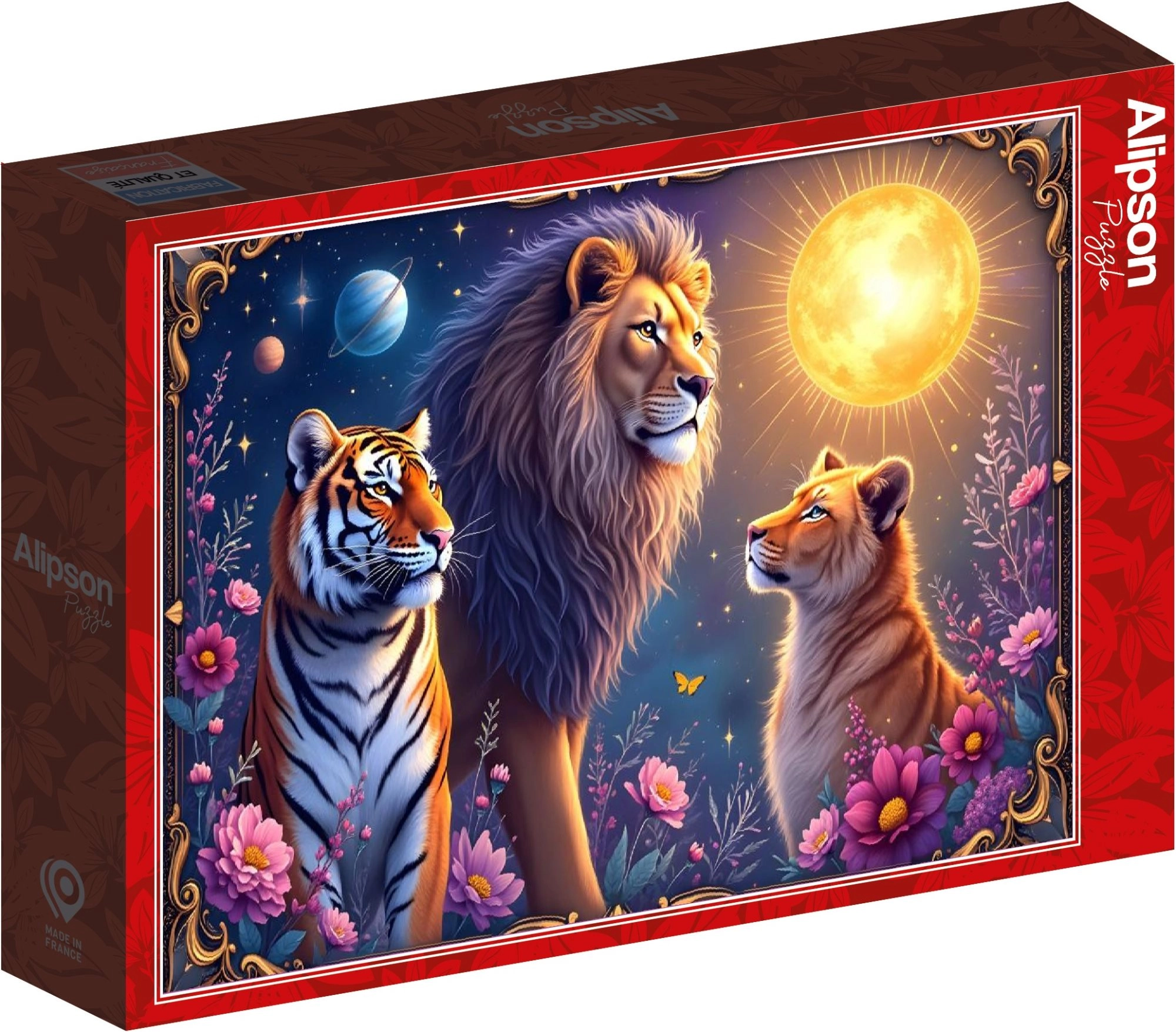 Découvrez un motif saisissant où se mêlent la majesté des félins et la profondeur mystérieuse de l’espace. Ce puzzle de 1000 pièces est parfait comme cadeau ou pour votre propre moment de détente – l’assemblage progressif développe la patience, la pensée logique et procure un sentiment de satisfaction bien mérité une fois terminé.