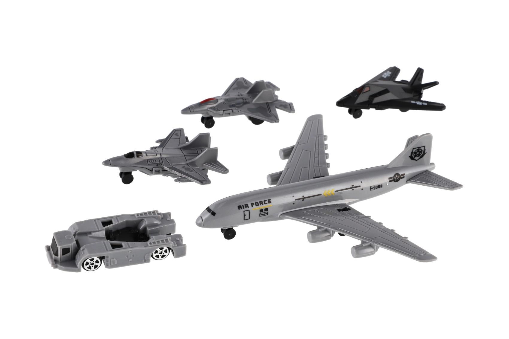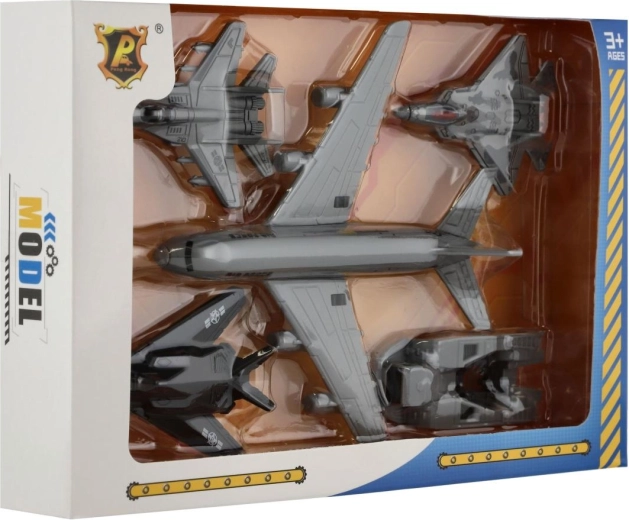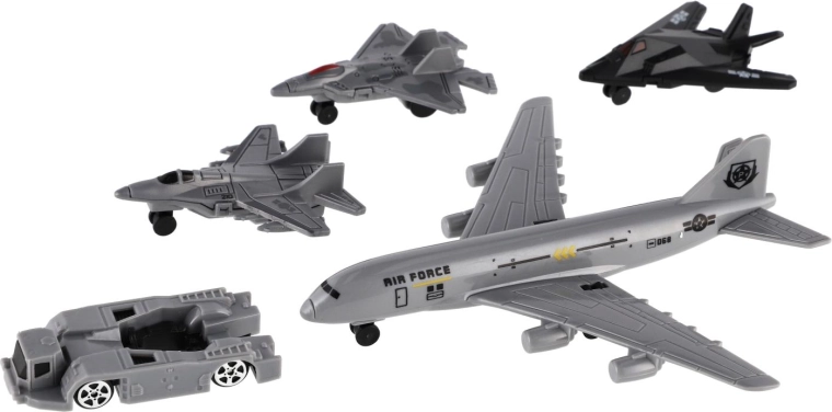 Ce set complet d’avions et de véhicules d’accompagnement est idéal pour des missions aériennes pleines d’action comme pour le jeu quotidien. Le grand avion de transport est complété par trois chasseurs et un véhicule terrestre, permettant aux enfants de créer des scénarios entiers – des décollages et atterrissages aux opérations de sauvetage ou d’entraînement tactique.