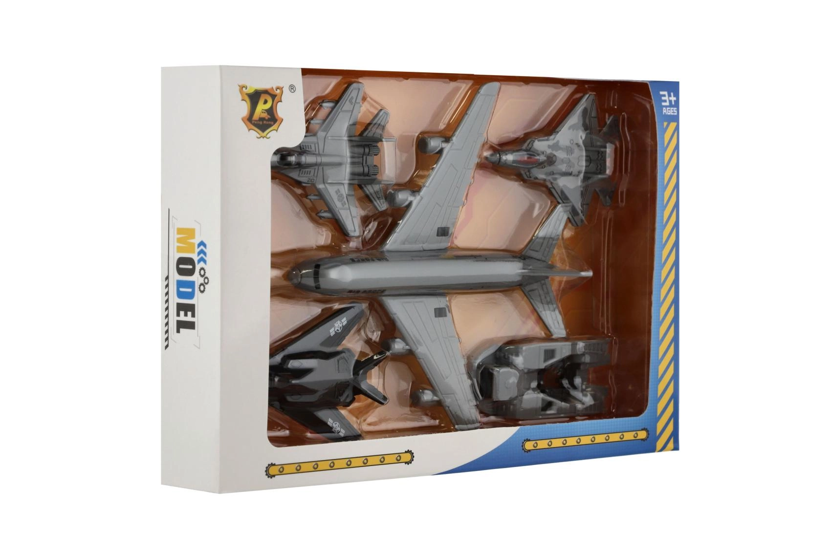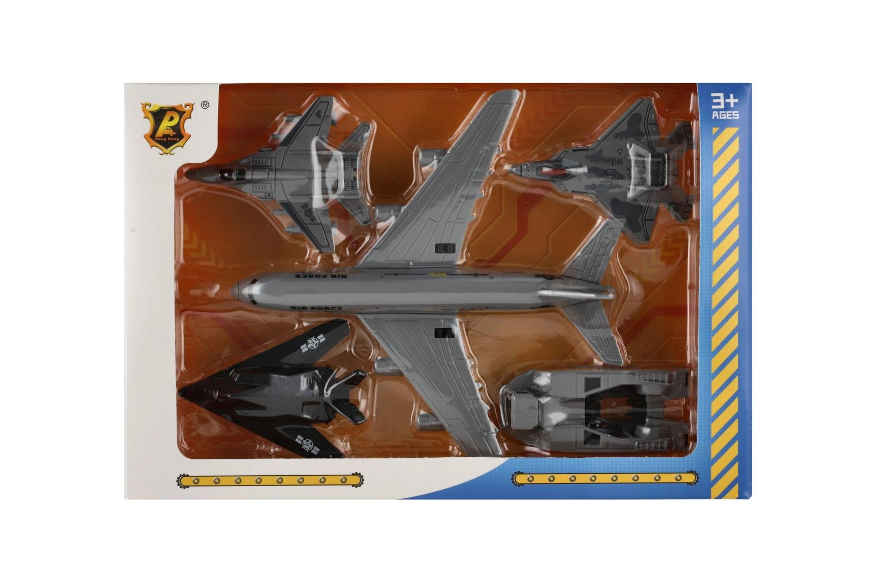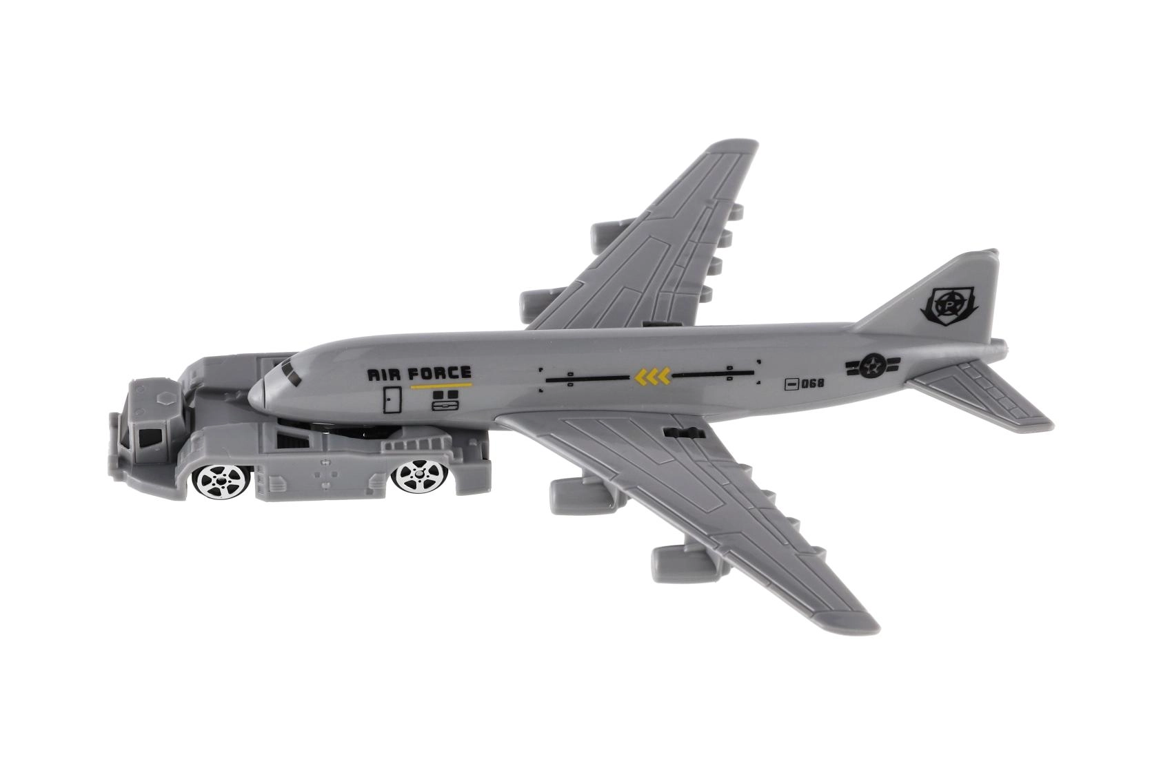 Un avion gris imposant avec l’inscription « Air Force » donne le ton à l’ensemble. Grâce à son train d’atterrissage et à la roue libre, il se manie facilement et permet de créer des scènes aériennes réalistes.