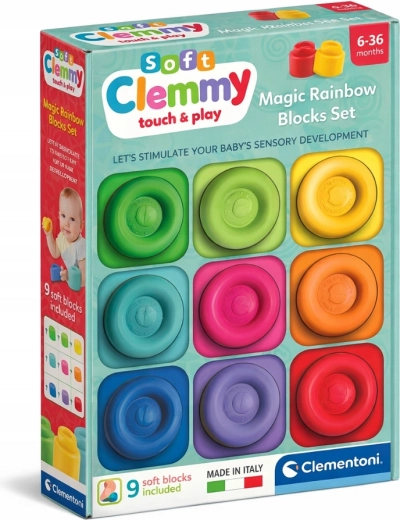 Découvrez le premier jeu de construction pour les tout-petits : les cubes souples Soft Clemmy de CLEMENTONI favorisent un jeu en toute sécurité, le développement des sens et la motricité fine dès 6 mois. Grâce à leur matière souple et élastique et à leurs couleurs joyeuses, ils tiennent parfaitement dans les petites mains et invitent à presser, empiler et réaliser les premières constructions.