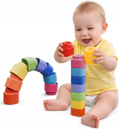 Les cubes Soft Clemmy, tout doux et colorés, sont un choix idéal pour les premières activités de construction. Ils sont fabriqués dans un matériau agréable et élastique, adapté aux bébés – sûr au toucher comme à mordiller. Les couleurs vives stimulent la vue, la curiosité et la créativité, tandis que l’empilement et l’assemblage développent la coordination œil–main et la motricité fine.