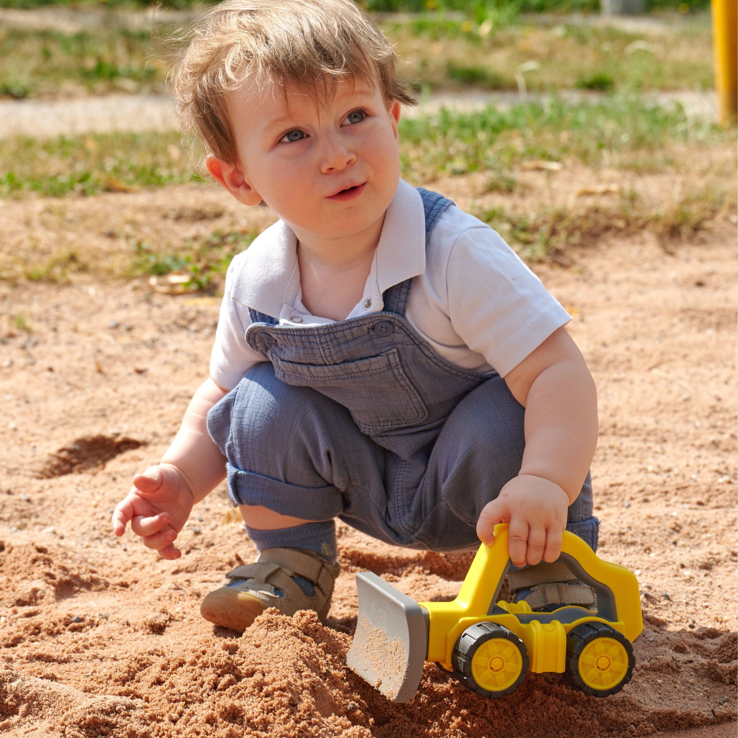 Une construction robuste et une lame avant invitent à pousser le sable et la terre, développant motricité, coordination et imagination.