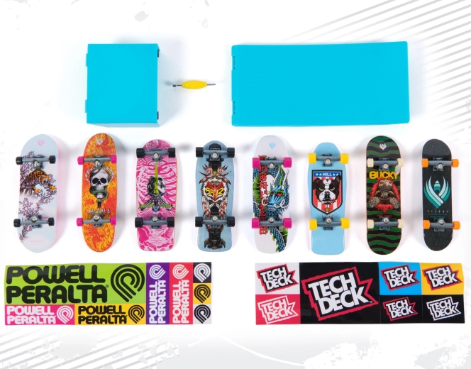 Le coffret comprend huit fingerboards complets avec des imprimés colorés percutants et des trucks et roues réalistes. Parfaits pour la collection comme pour une utilisation quotidienne.