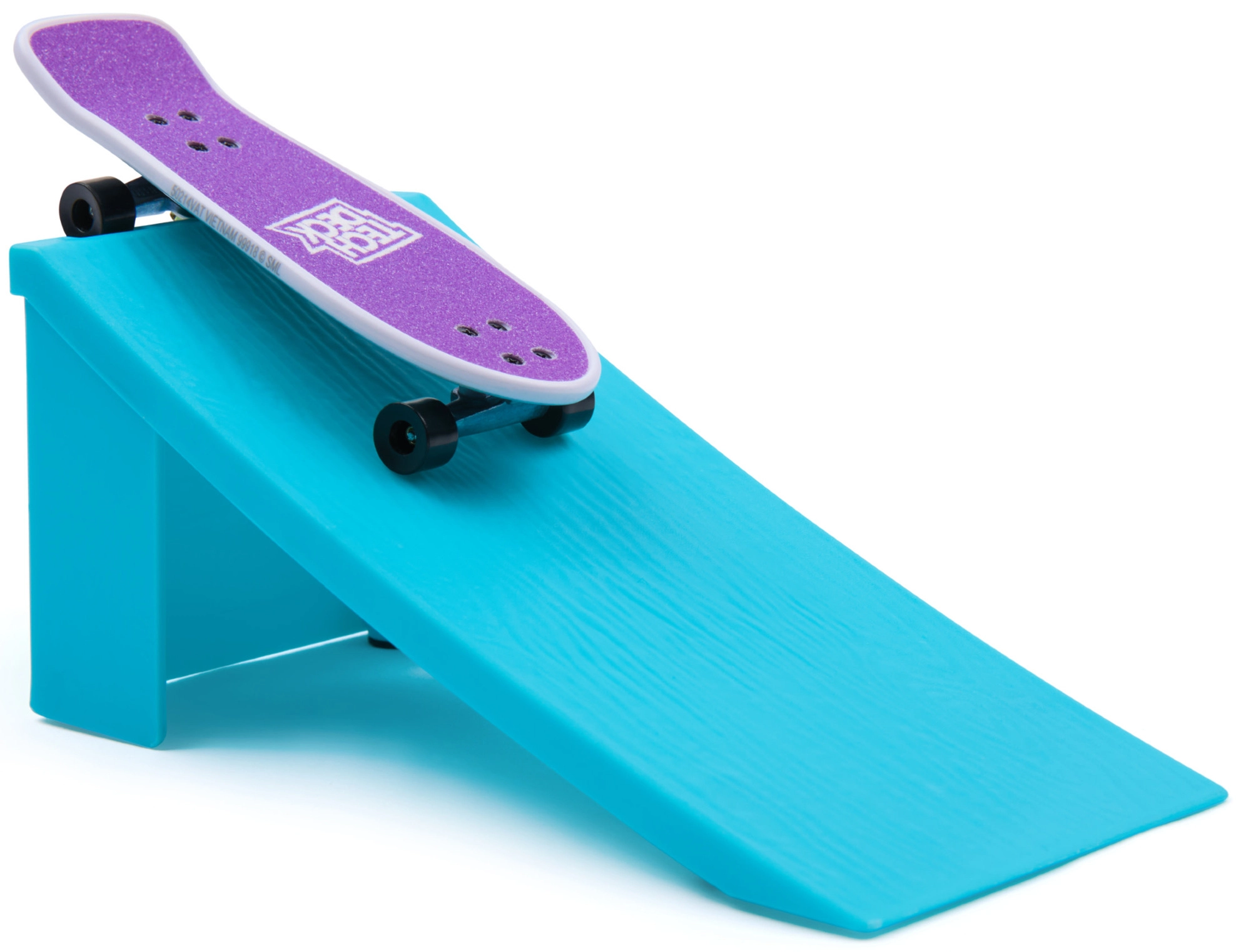 La rampe en plastique fournie, avec surface texturée, est idéale pour les sauts, drops et atterrissages fluides – faites passer vos tricks au doigt au niveau supérieur.