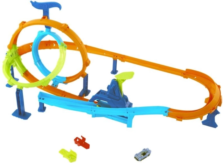 Cette piste de course dynamique est conçue pour un maximum de fun et des duels palpitants. Grâce à la double boucle et au lancement rapide des voitures, les bolides filent à toute vitesse sur la piste et foncent droit vers des zones pleines d’impacts et d’effets. Idéal pour les enfants qui adorent les jeux dynamiques et la compétition.