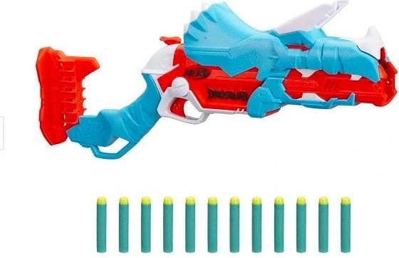Le blaster est stylisé à l'image du dinosaure Triceratops bien-aimé. Son design unique apporte du plaisir dans le monde des dinosaures, que les enfants adorent.