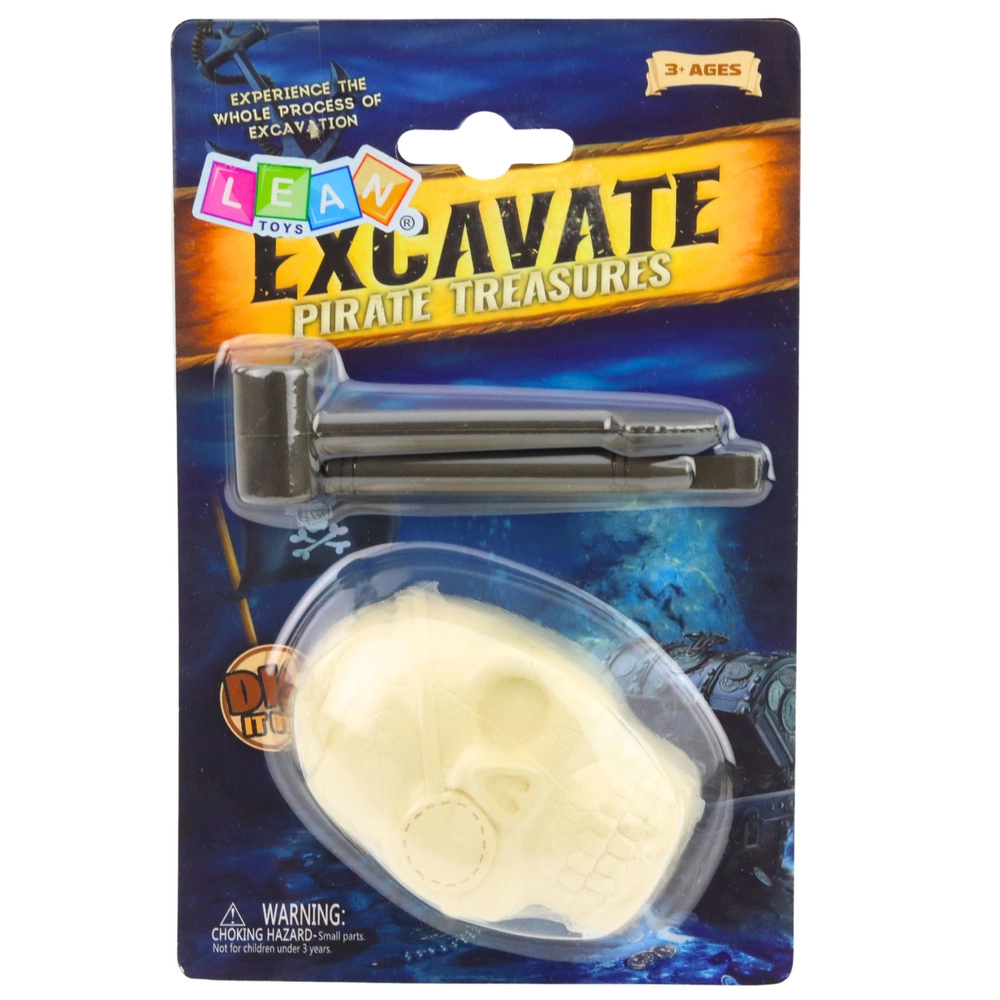 Un bloc de plâtre finement sculpté en forme de crâne de pirate invite au premier coup de ciseau et de marteau et renferme une surprise à l’intérieur.