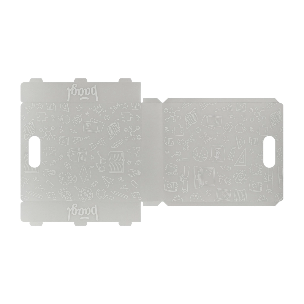 Des chemises pliantes BAAGL en polypropylène 100 % recyclé qui gardent en ordre manuels, cahiers et fiches. Elles sont légères (moins de 140 g), résistantes et, grâce à leur construction rigide, protègent le contenu contre l’humidité et les dommages. Le matériau translucide facilite l’orientation rapide et la poignée pratique assure un retrait aisé du sac à dos et un transport confortable.