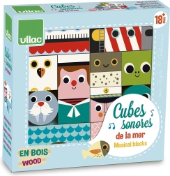 Ces cubes sensoriels en bois aux motifs marins offrent aux enfants la joie de découvrir formes, couleurs et sons. En secouant et en empilant, les enfants exercent la préhension, la coordination et la concentration, tandis que les différents éléments sonores renforcent leur perception auditive. Les illustrations d’Ingela P. Arrhenius apportent au set une touche rétro unique et un caractère ludique.