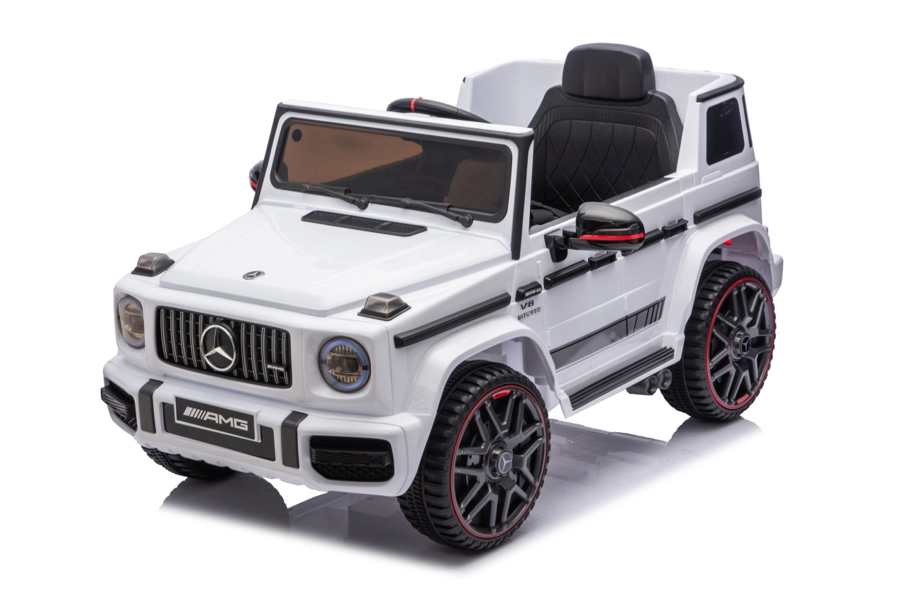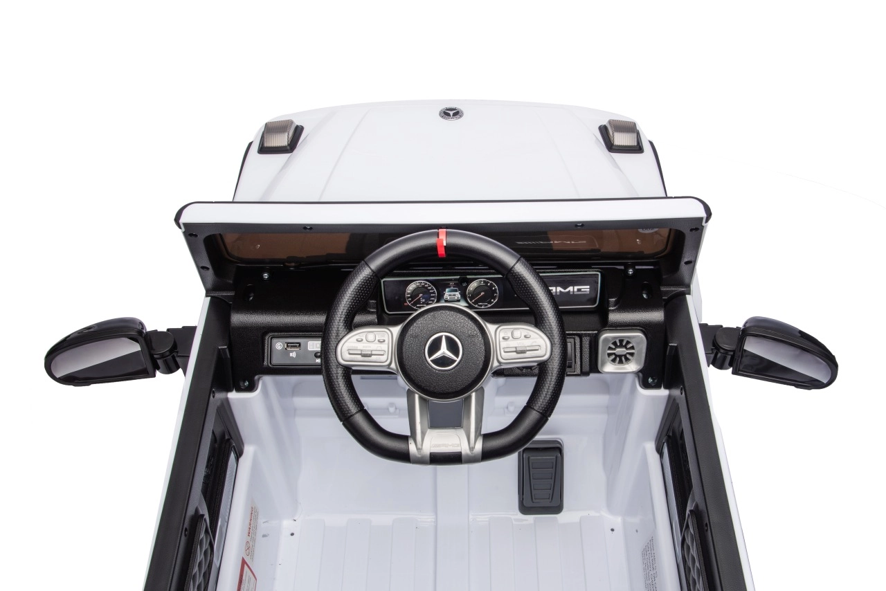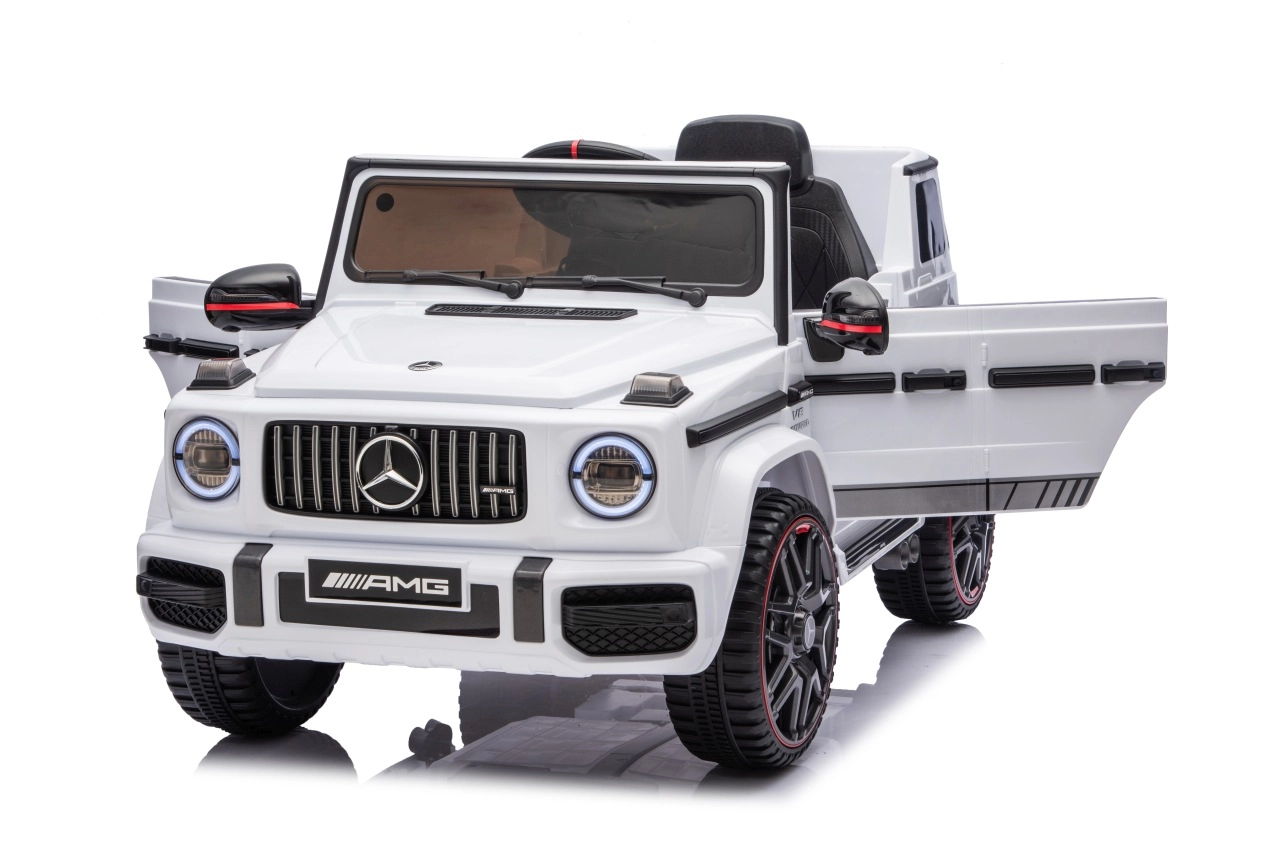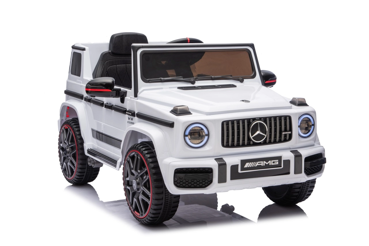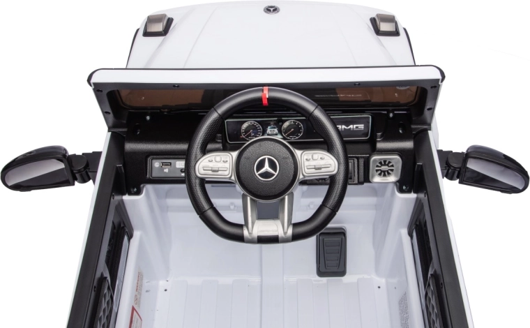 Petit conducteur, grandes aventures. La voiture électrique Mercedes‑AMG G63 séduit par l’apparence authentique de l’iconique Classe G – de la calandre distinctive et des projecteurs aux jantes sport avec accents rouges et au cache‑roue de secours. Démarrage en douceur, marche avant/arrière et cockpit clair à commandes faciles rendent chaque balade agréable.