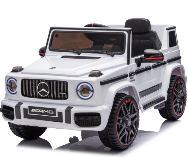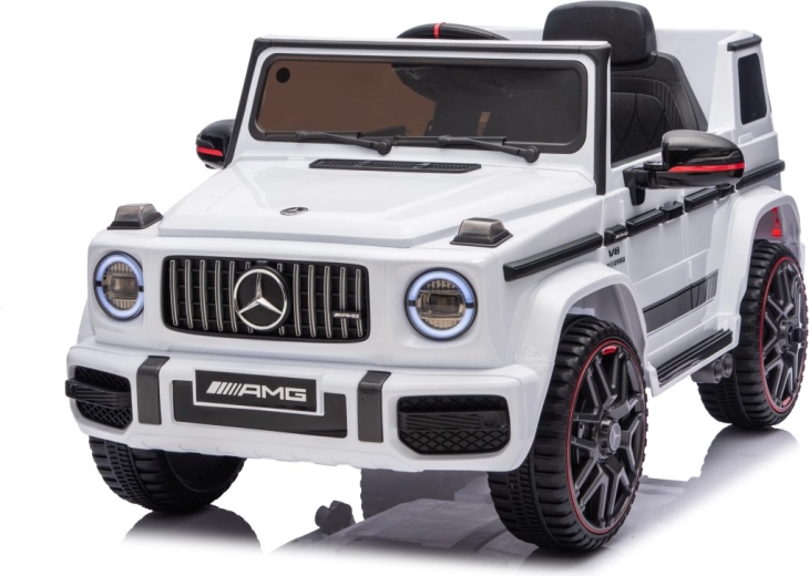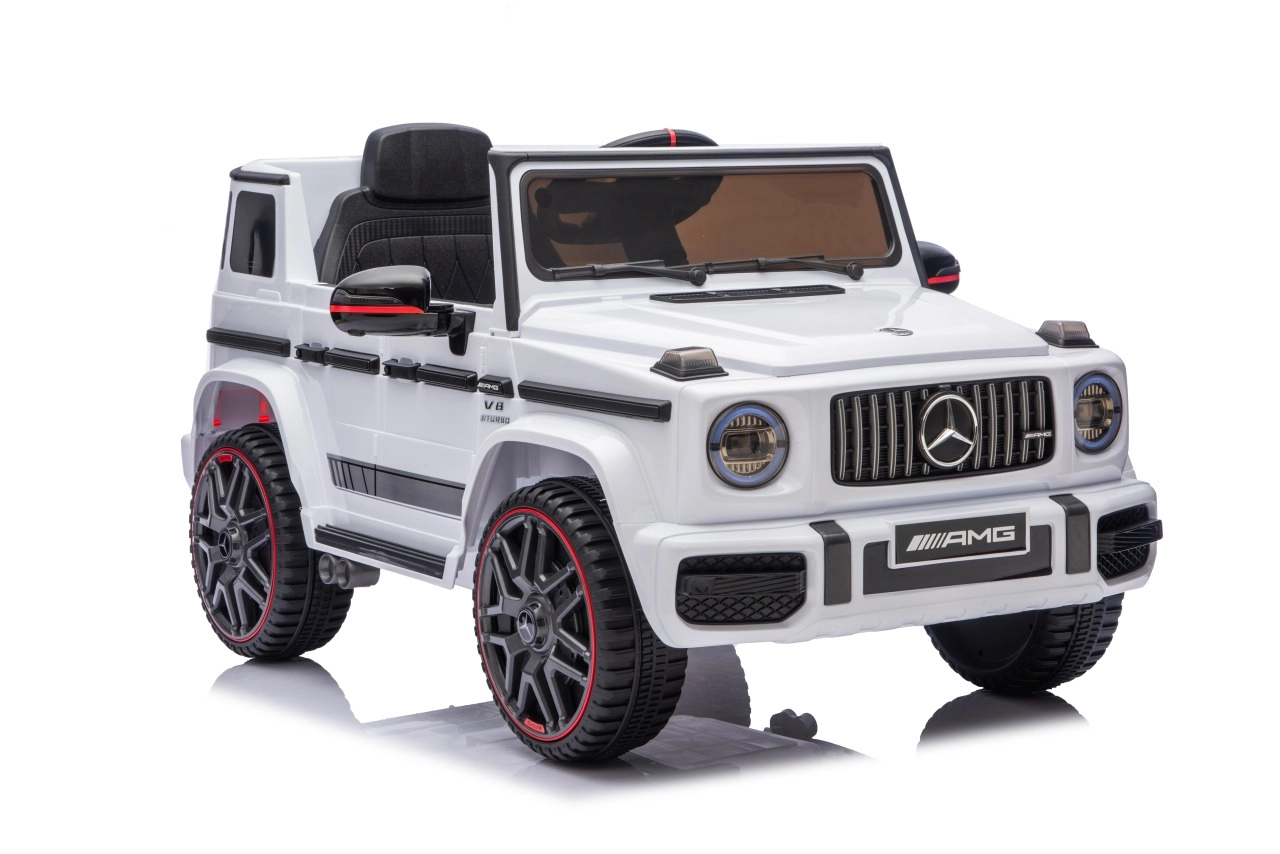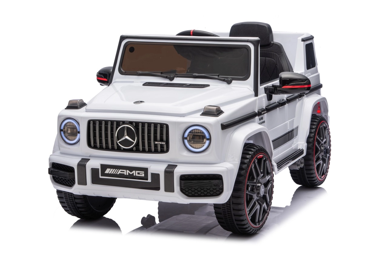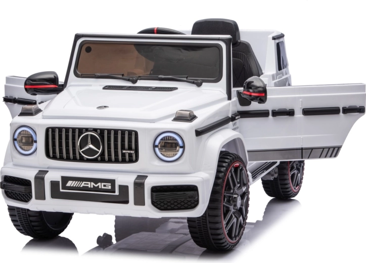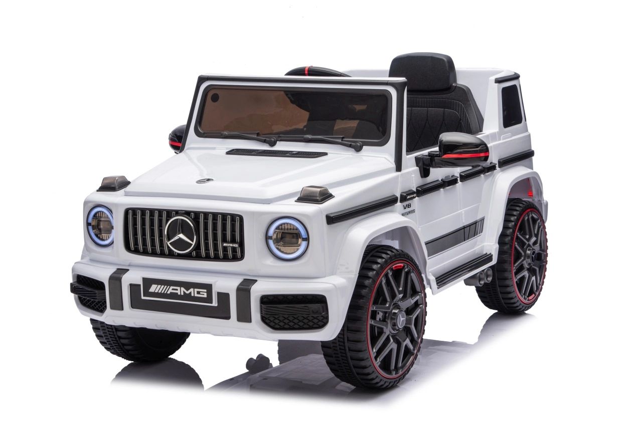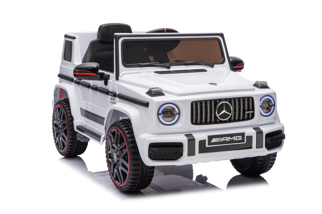 Petit conducteur, grandes aventures. La voiture électrique Mercedes‑AMG G63 séduit par l’apparence authentique de l’iconique Classe G – de la calandre distinctive et des projecteurs aux jantes sport avec accents rouges et au cache‑roue de secours. Démarrage en douceur, marche avant/arrière et cockpit clair à commandes faciles rendent chaque balade agréable.
