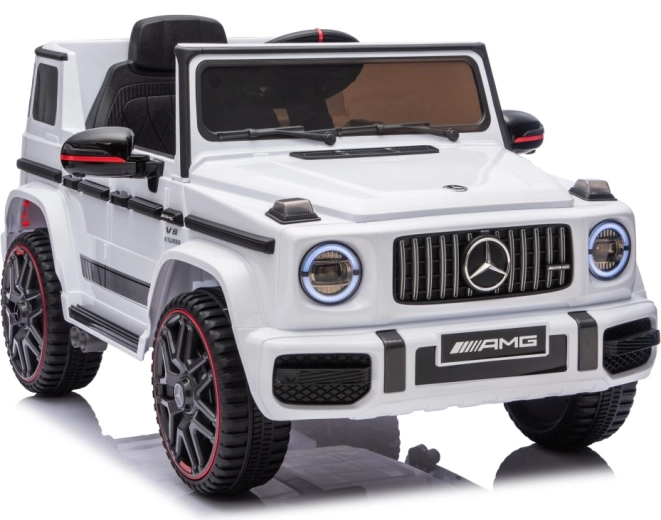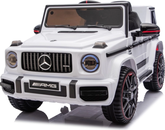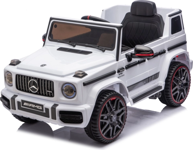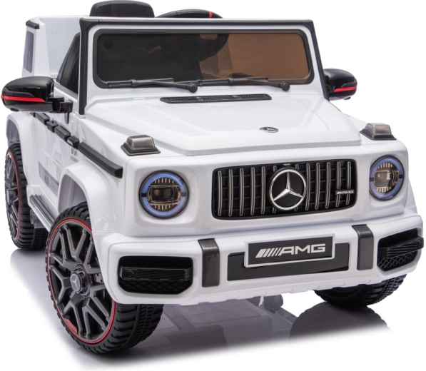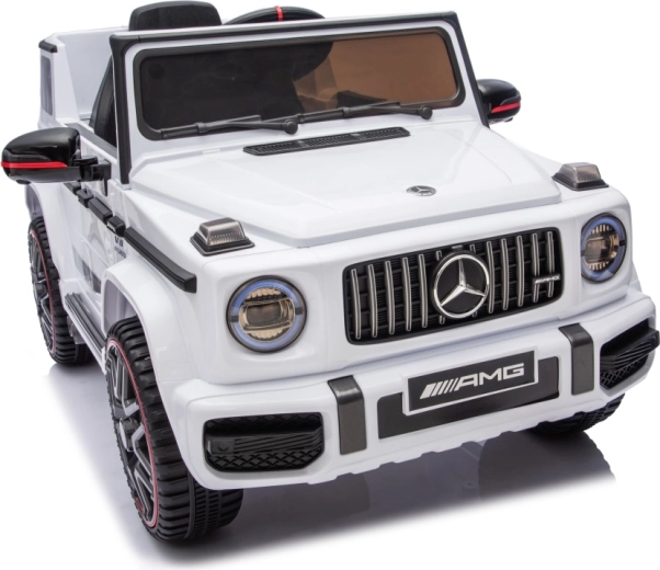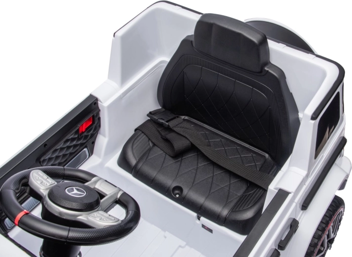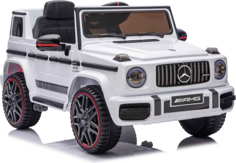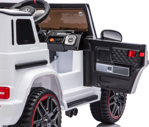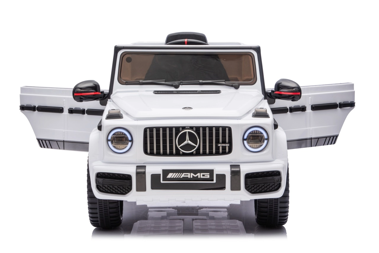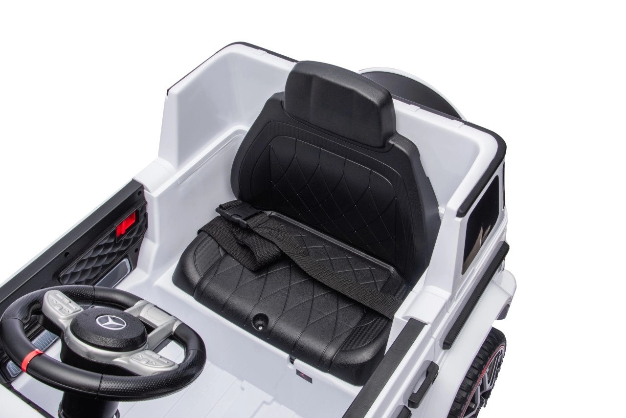 Petit conducteur, grandes aventures. La voiture électrique Mercedes‑AMG G63 séduit par l’apparence authentique de l’iconique Classe G – de la calandre distinctive et des projecteurs aux jantes sport avec accents rouges et au cache‑roue de secours. Démarrage en douceur, marche avant/arrière et cockpit clair à commandes faciles rendent chaque balade agréable.