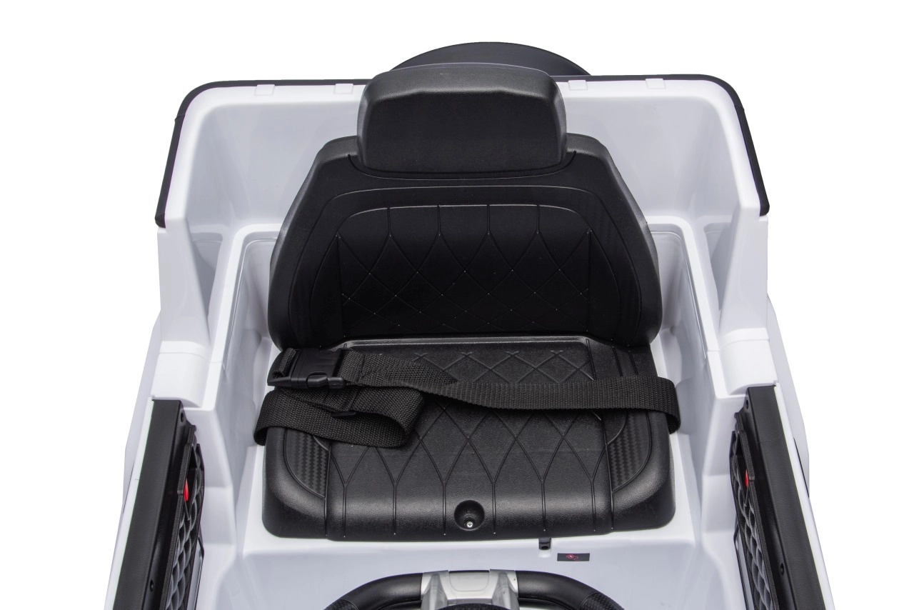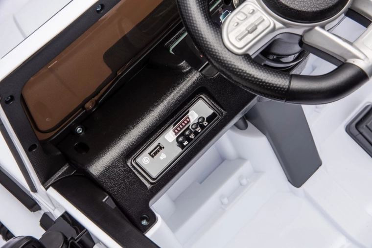 Musique et sons ? Un panneau audio intégré avec Bluetooth, USB et MP3, des mélodies préenregistrées et un klaxon au volant assurent le divertissement à chaque trajet. L’indicateur de charge surveille l’état de la batterie, tandis que les portes ouvrantes et les phares LED avant fonctionnels renforcent le réalisme.