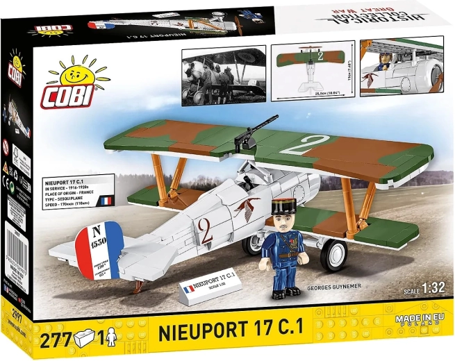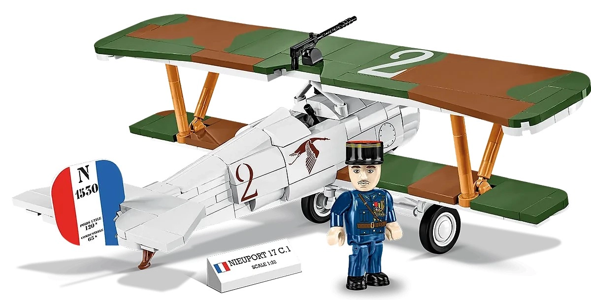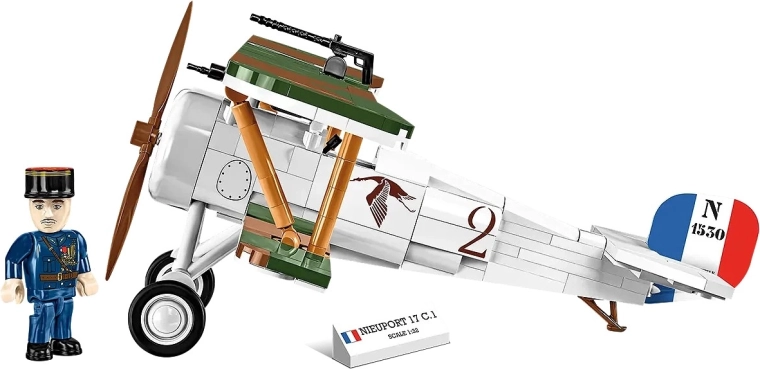 Construisez le légendaire chasseur biplan français Nieuport 17 C.1 de la Première Guerre mondiale à l’échelle 1:32. Ce kit de 277 pièces offre une réalisation authentique, une hélice et un train d’atterrissage fonctionnels, un support avec plaque nominative et une minifigurine de pilote inspirée de Georges Guynemer. Idéal pour les collectionneurs, les passionnés d’histoire et les jeunes constructeurs 9+.