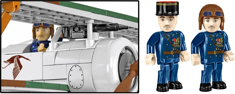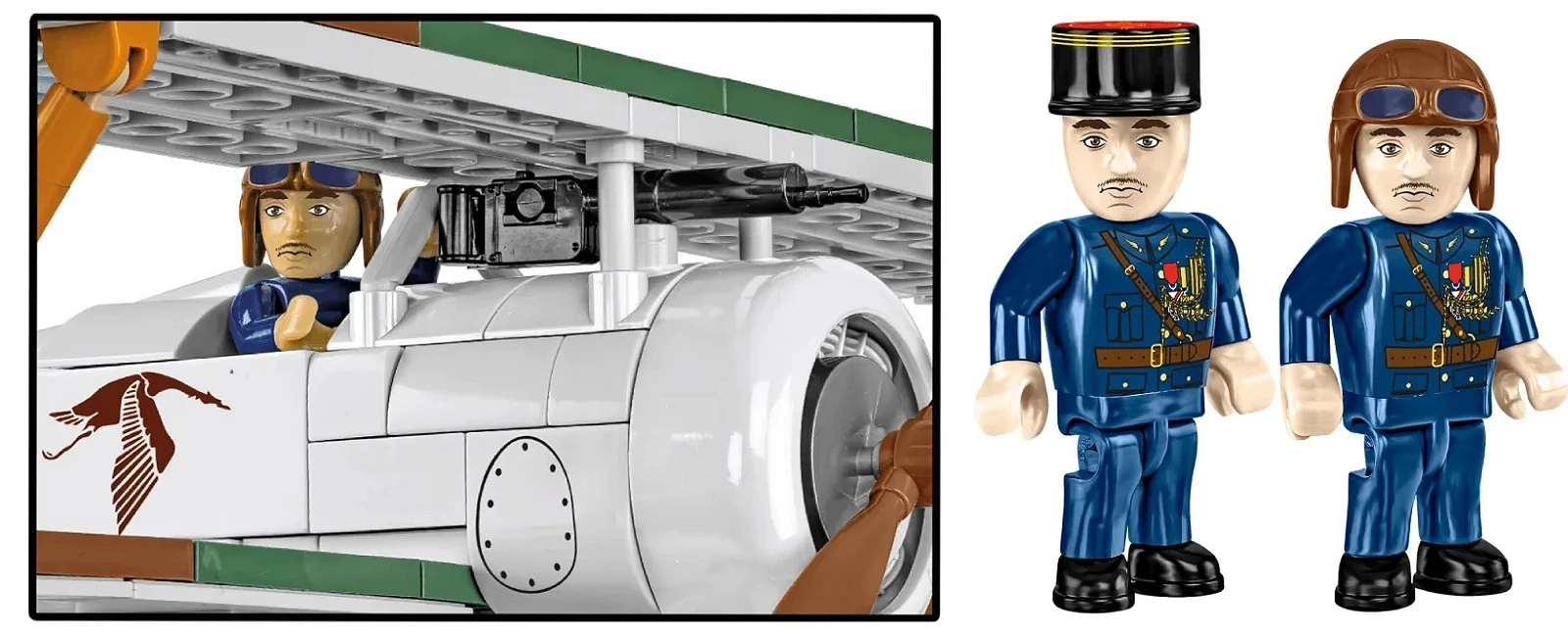 Comprend une figurine de pilote inspirée de Georges Guynemer, avec deux couvre-chefs interchangeables – képi et casque de pilote avec lunettes – pour multiplier les scénarios de jeu.