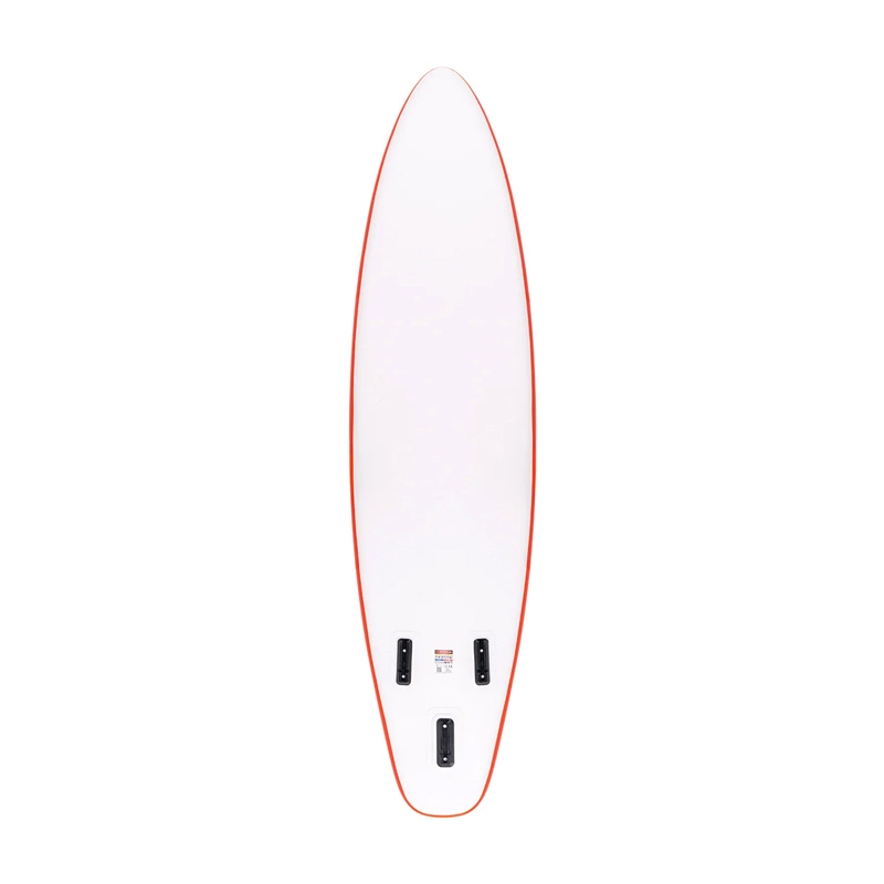 Des détails pratiques comme la poignée centrale pour un transport aisé, les sandows bungie pour fixer les bagages et l’anneau en D pour attacher un leash ou un siège de kayak font de cette planche un excellent choix pour la randonnée aquatique, le fitness et le yoga. La pression recommandée de 12–15 PSI assure une rigidité optimale et une glisse efficace.