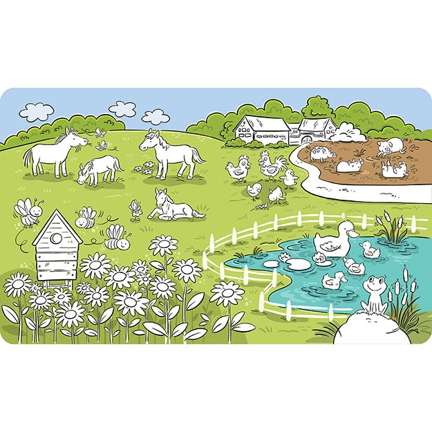 Ce livre réutilisable aux motifs de la ferme offre aux enfants des heures de créativité sans taches ni désordre. Il suffit de remplir le stylo fourni avec de l’eau, de passer sur l’image et d’observer comment les couleurs se révèlent magiquement. Une fois sec, la page redevient blanche et est prête pour une nouvelle aventure créative.