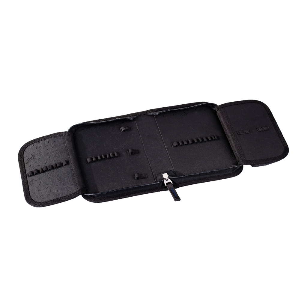 Le set comprend une trousse à un seul compartiment avec deux rabats, une fermeture YKK durable, une petite poche pour les accessoires, une fenêtre pour l’emploi du temps et des élastiques solides adaptés aussi aux crayons triangulaires (livrée sans contenu). Le sac pour chaussures ou sport est doté d’un mousqueton pratique pour l’attacher au sac à dos. L’ensemble est fabriqué à partir de matériaux recyclés et certifié GRS, avec un accent sur la sécurité grâce aux éléments réfléchissants.