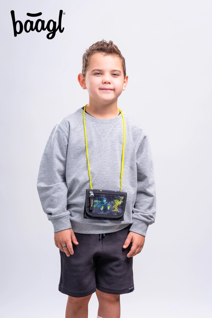 Vous cherchez un portefeuille léger et sûr pour les enfants ? Ce portefeuille tour de cou BAAGL au motif tracteur permet d’avoir l’essentiel toujours à portée de main – de la petite monnaie au badge de cantine jusqu’à la clé de casier. Grâce à la sangle réglable avec sécurité, il s’adapte confortablement et se libère en cas d’accrochage.