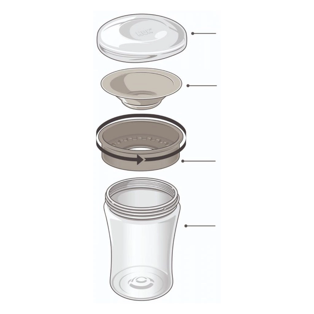 La NUK Magic Cup Minnie est une tasse d’apprentissage intelligente qui apprend aux enfants à boire depuis un bord classique, sans anses. Le liquide reste en sécurité à l’intérieur grâce au disque d’étanchéité en silicone et ne se libère qu’en aspirant sur le bord. Le bord à 360° permet de boire de n’importe quel côté, de manière naturelle et intuitive.