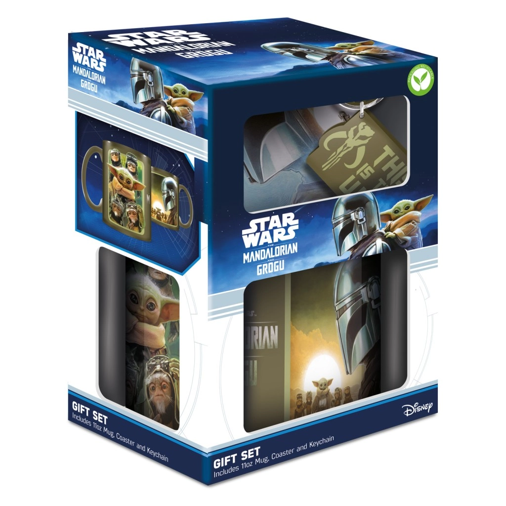 Découvrez un coffret thématique inspiré de l’univers STAR WARS : THE MANDALORIAN. L’ensemble comprend un mug en céramique avec les graphismes de Mando et Grogu, un dessous de verre carré avec le casque iconique, et un porte-clés robuste avec la devise légendaire « This is the way ». Le tout est présenté dans un emballage cadeau soigné, idéal à offrir.