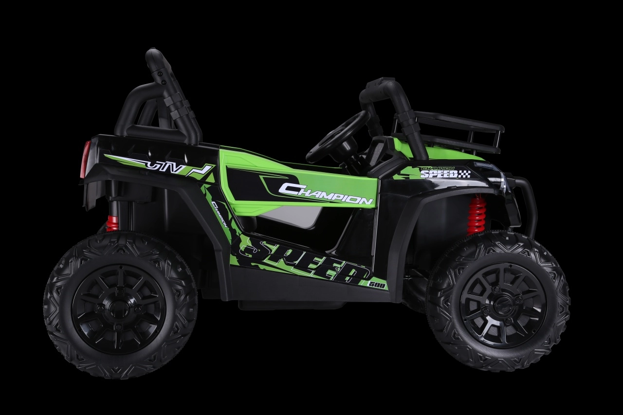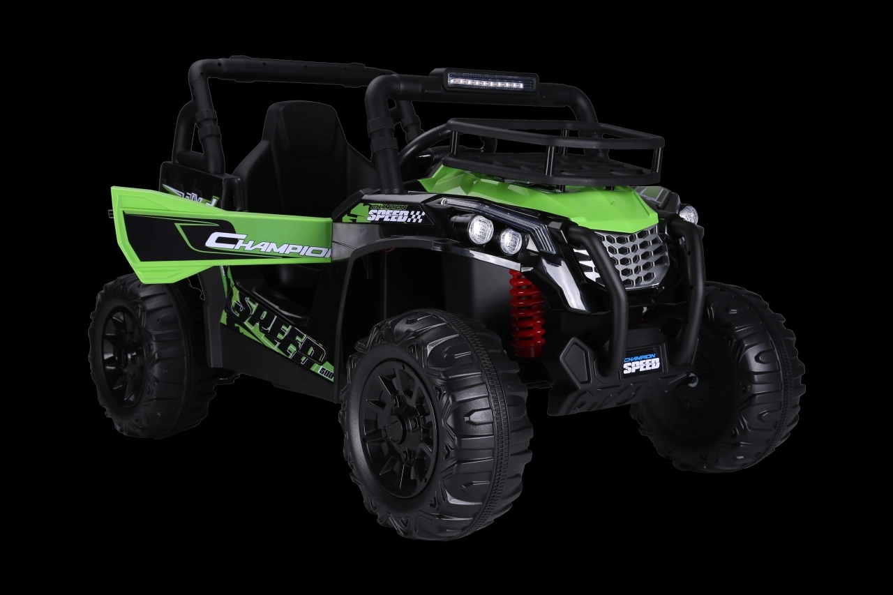 Découvrez le plaisir du tout-terrain avec le véhicule pour enfants UTV Lift en vert. Il offre 2 moteurs puissants 2x200 W, une batterie 24 V 5 Ah, un démarrage en douceur et un contrôle via une télécommande 2,4 GHz avec 3 vitesses et un bouton de sécurité Stop. Le confort est assuré par un siège en cuir éco avec ceintures de sécurité, des roues en mousse EVA et une suspension arrière. S’ajoutent des phares avant LED et un panneau audio avec MP3/USB pour encore plus de divertissement.
