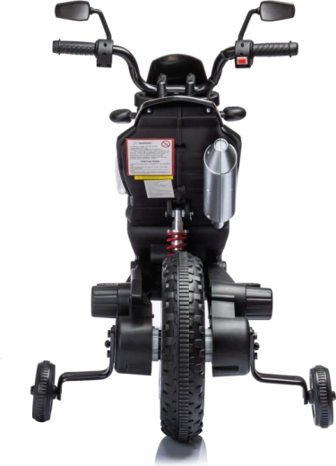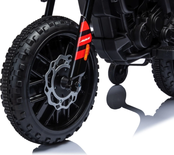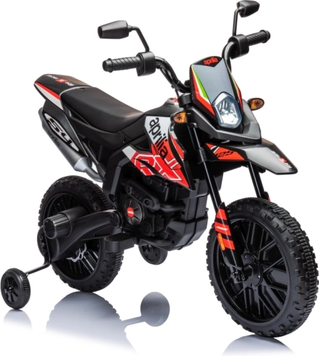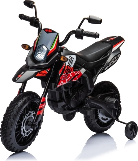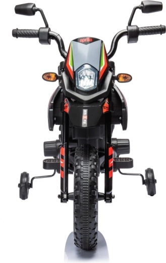 Moto électrique pour enfants stylée APRIAILA RX avec une puissance de 2×35 W, une batterie 12 V 7 Ah et des roues EVA pour une conduite silencieuse. Offre un démarrage en douceur, un phare LED avant, une suspension arrière à ressort et des roulettes latérales de stabilisation pour un apprentissage en toute sécurité. Le panneau audio avec MP3/USB/Bluetooth et des mélodies préenregistrées ravira chaque petit pilote.