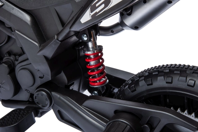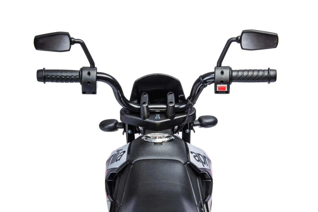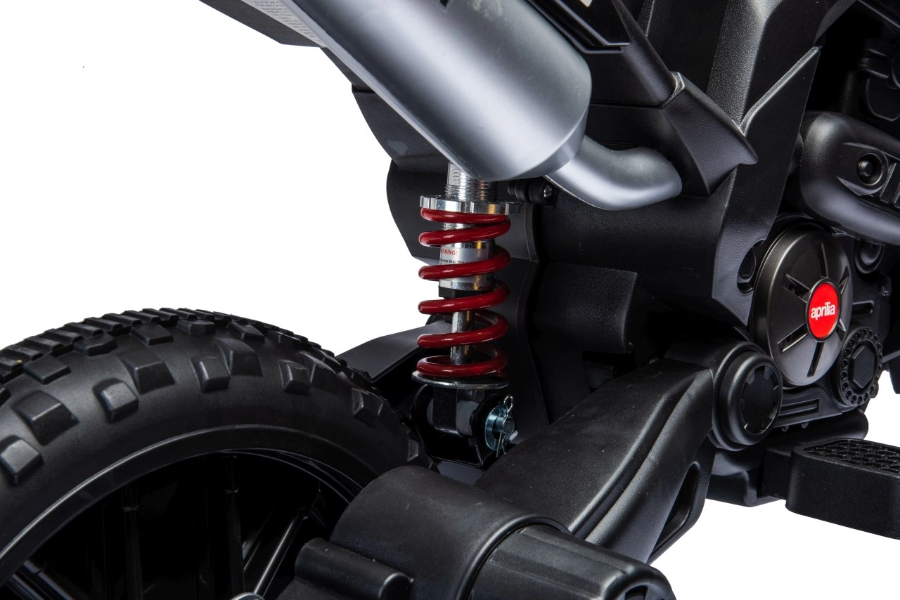 La moto APRILIA RX est un choix idéal pour les petits passionnés de deux-roues. Grâce à son double moteur puissant 2×35 W et à sa batterie 12 V 7 Ah, les enfants profiteront d’une conduite fluide et amusante. Les pneus EVA assurent un roulement silencieux et une meilleure adhérence, tandis que la suspension arrière lisse les irrégularités et améliore le confort.