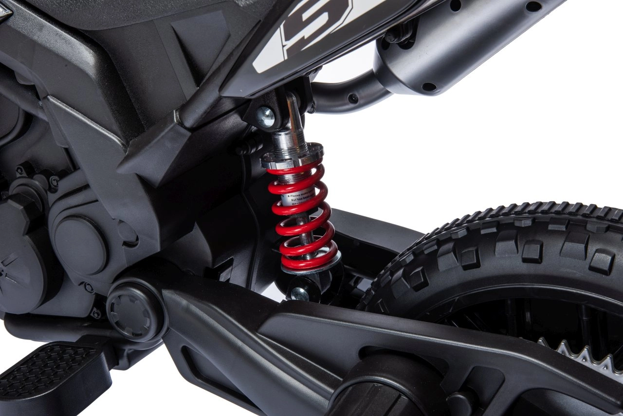 Le divertissement est complété par un panneau multimédia avec MP3, USB, Bluetooth et des mélodies préenregistrées. La moto convient aux enfants jusqu’à 30 kg, avec une généreuse garde au sol de 20 cm pour franchir plus facilement les irrégularités.