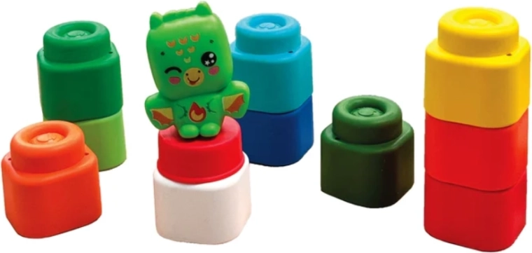 Grâce à leur prise en main aisée, les enfants assemblent facilement les blocs et construisent leurs premières petites tours et structures. Le jeu développe naturellement la motricité fine, la coordination œil-main, la créativité et soutient la perception sensorielle. Le plaisir est enrichi par une adorable figurine de petit dragon, qui invite aux histoires et aux jeux de rôles.