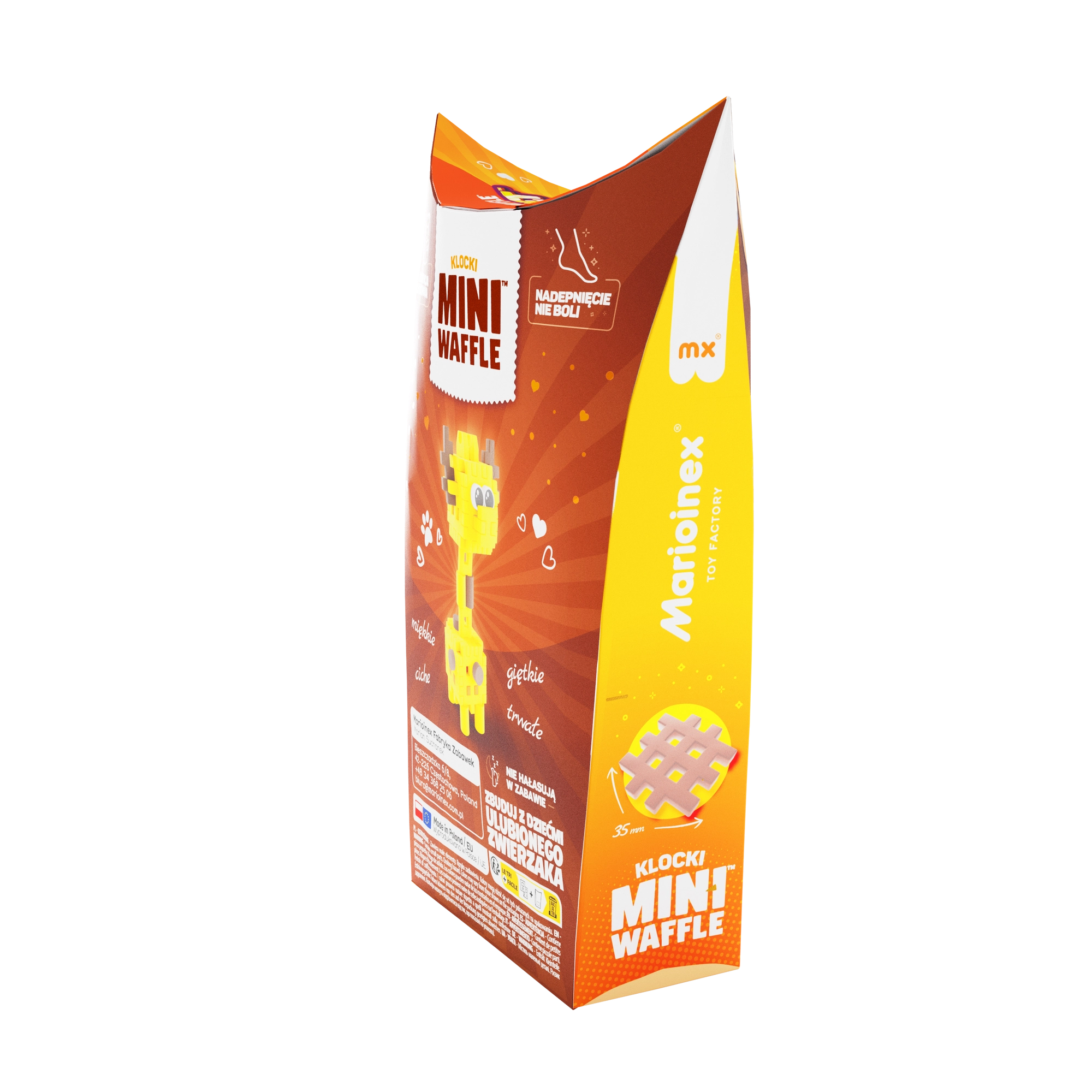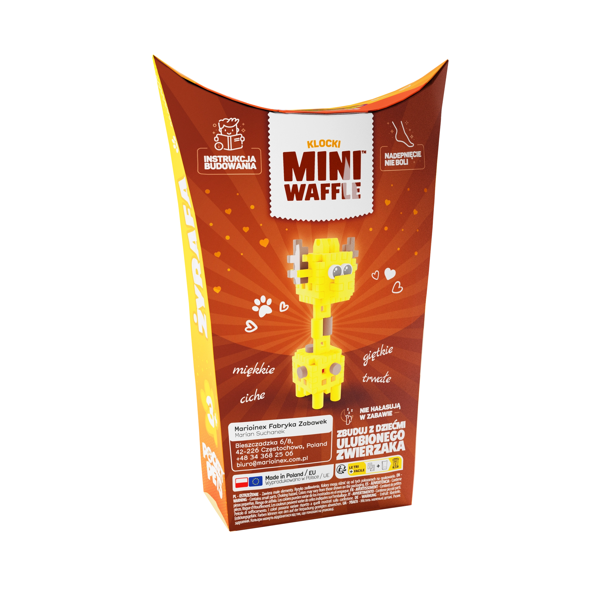 Découvrez le monde créatif avec le Mini Waffle Pocket Pets – Girafe de la marque Marioinex. Ce set compact avec 35 pièces colorées permet de construire en 2D et 3D, développe la motricité fine, la pensée logique et l’imagination. Les pièces sont élastiques, résistantes et sûres, faciles à assembler et à désassembler – idéal pour des constructions répétées à la maison comme en voyage.