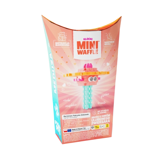 Créez votre propre monde marin avec le set Mini Waffle Pocket Pets – Méduse. Grâce aux pièces souples et agréables au toucher, les enfants peuvent assembler et démonter facilement les modèles, essayer de nouvelles combinaisons et les relier à d’autres jeux de construction Mini Waffle. Le set est idéal pour les filles et les garçons dès 3 ans et favorise le jeu autonome comme la création en groupe.