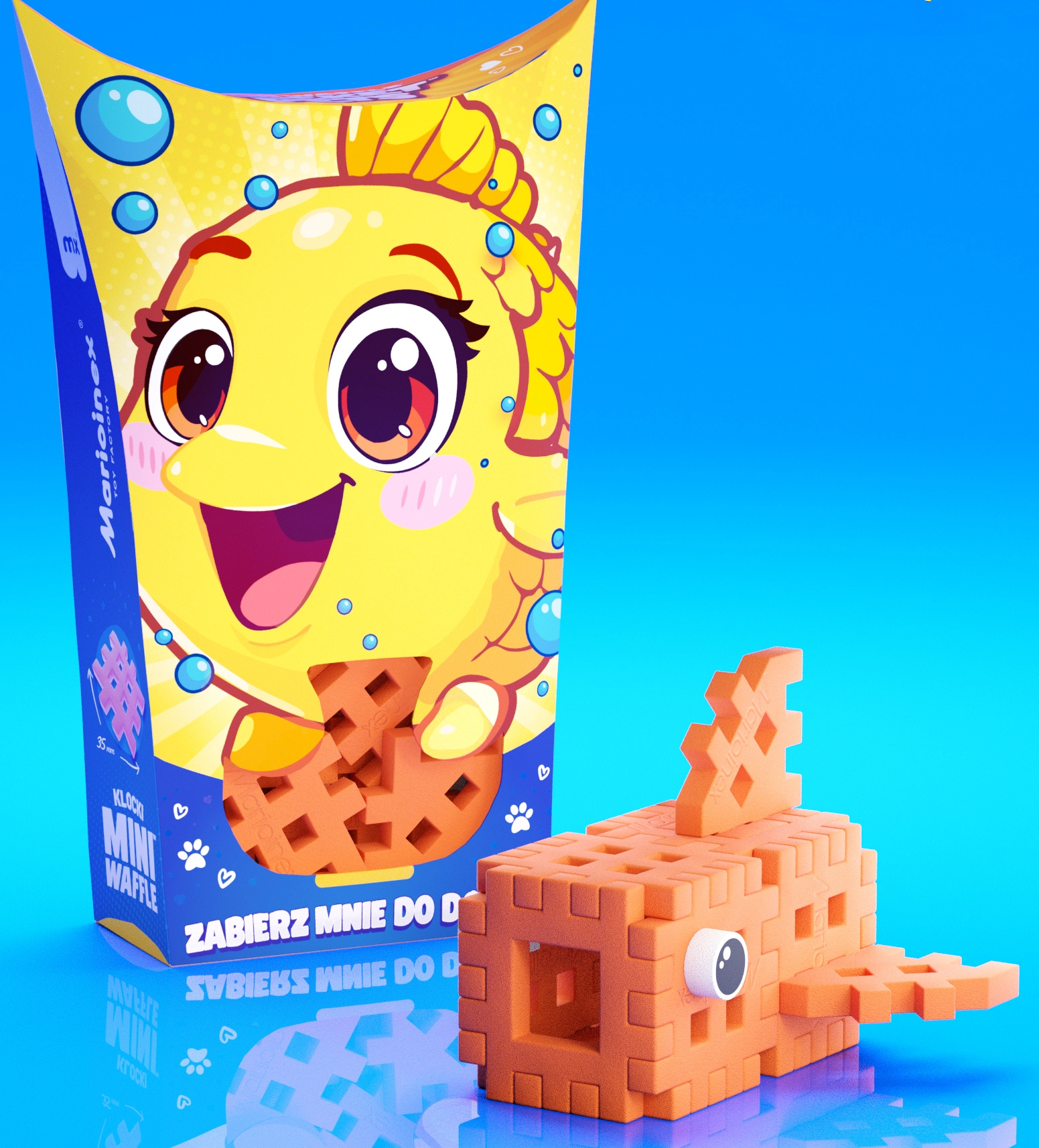 Contenu de l’emballage : 16 pièces Mini Waffle, notice détaillée pas à pas pour assembler le poisson.