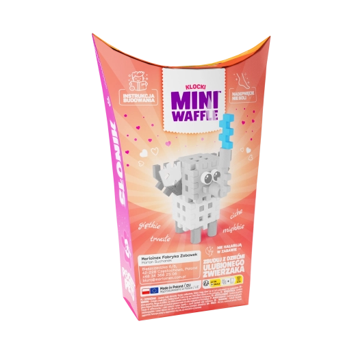 Créez un adorable éléphanteau et ajoutez-le à votre collection d’animaux Pocket Pets. Le kit ravira les enfants dès 3 ans et stimulera leur imagination – la figurine finie deviendra le héros de nombreuses histoires et pourra faire partie de constructions plus grandes avec d’autres ensembles MINI WAFFLE.
