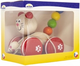 Ce jouet à tirer en forme de chat captivera tout petit qui découvre déjà le monde des premières foulées. Avec le chat, une souris s'amuse à rouler en arrière-plan sur la ficelle, ajoutant une dimension supplémentaire de divertissement.