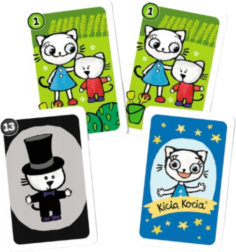 Ce set de cartes joyeusement illustrées avec des motifs KICIA KOCIA est conçu pour les tout-petits – aussi bien pour les débutants que pour les enfants qui connaissent déjà bien les règles. Grâce à son format léger et compact, vous pouvez l’emporter facilement en voyage, en visite ou lors de rencontres entre amis.