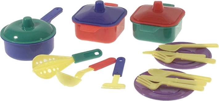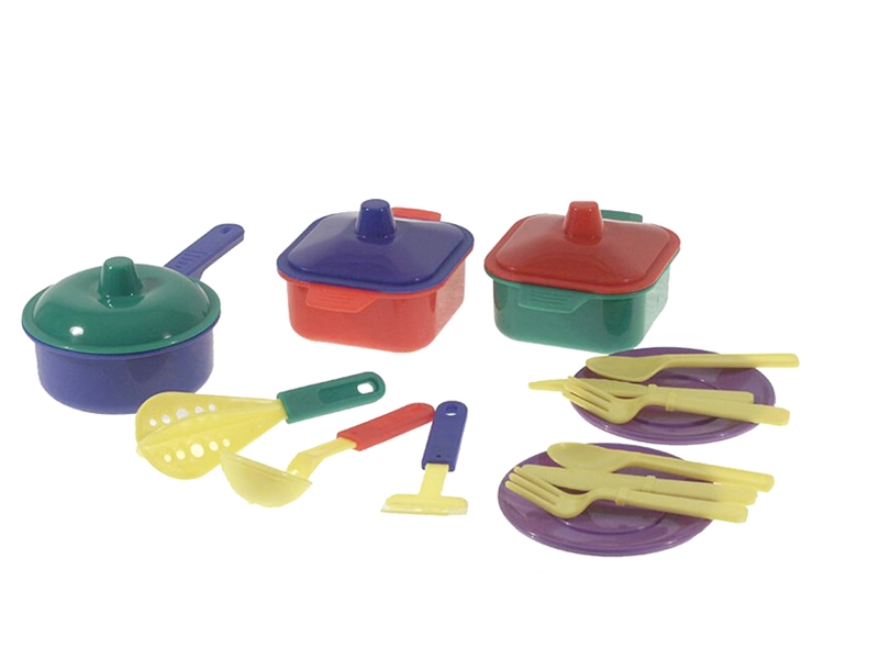 L’ensemble comprend tout le nécessaire pour une petite cuisine : poêles, casserole, assiettes et couverts. Le set convient aux cuisines pour enfants, aux jeux de cuisine et aux moments de jeu partagés entre frères, sœurs et amis.