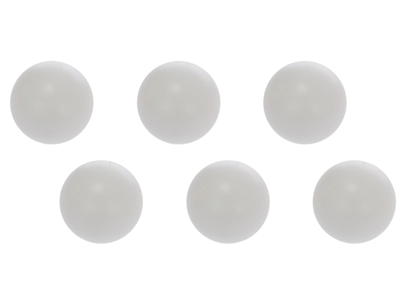 Carte blister contenant six balles blanches – un stock idéal pour les séries d’entraînement et le jeu à domicile.