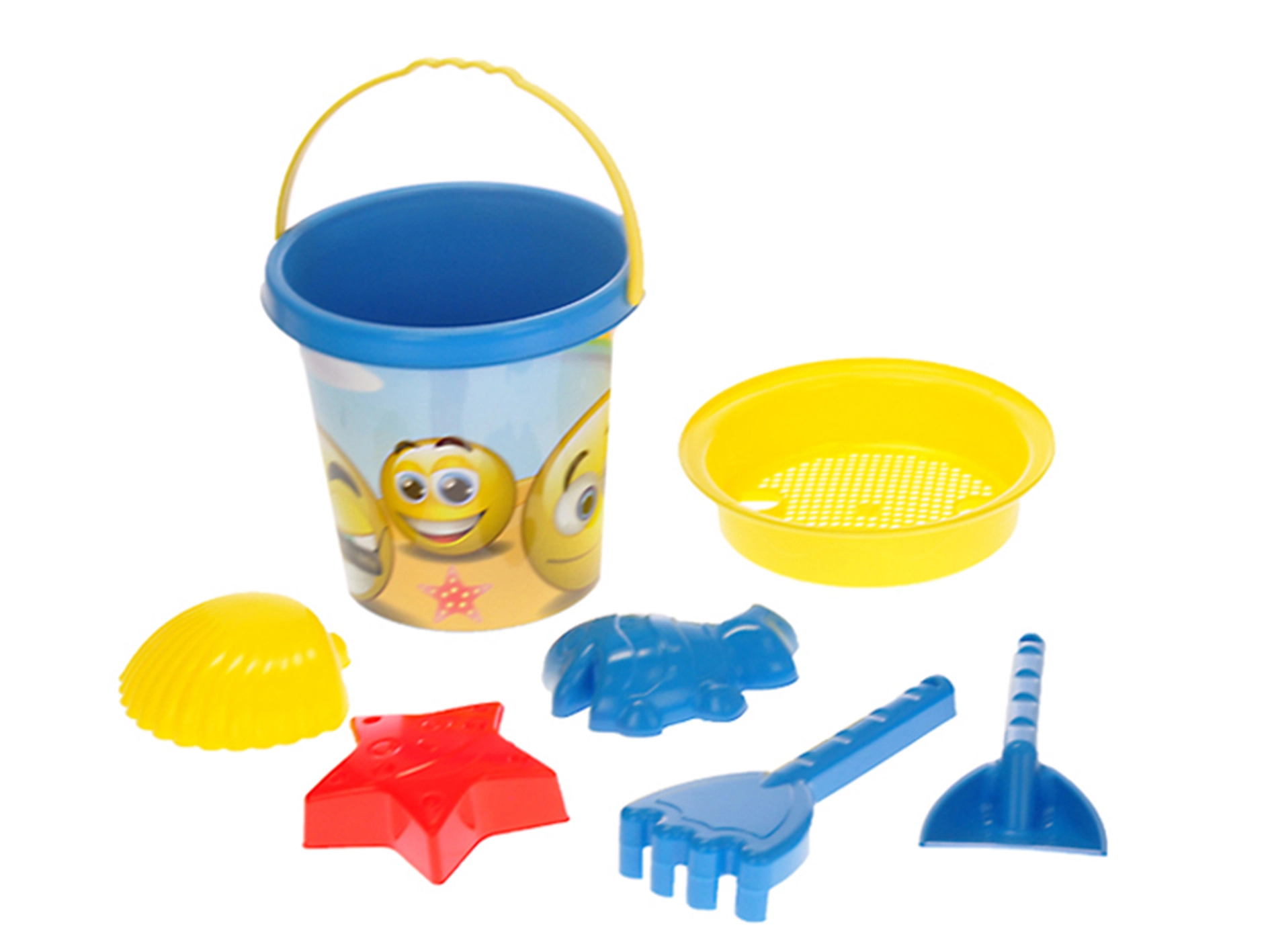 - Seau, tamis, pelle, râteau, 3 moules smileys