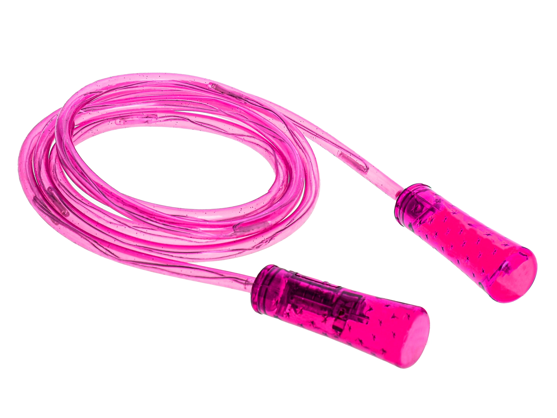 La corde en plastique de qualité et les poignées robustes supportent une utilisation quotidienne. Proposée en trois couleurs attrayantes : rose, bleu et violet.