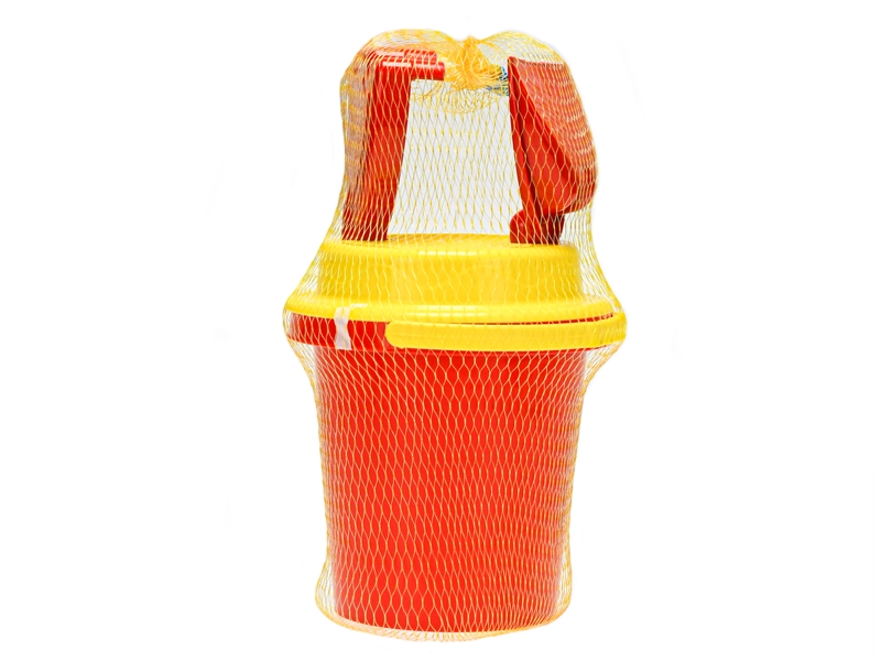 Set de plage pour enfants en filet (seau, tamis, pelle, râteau) 14 cm
