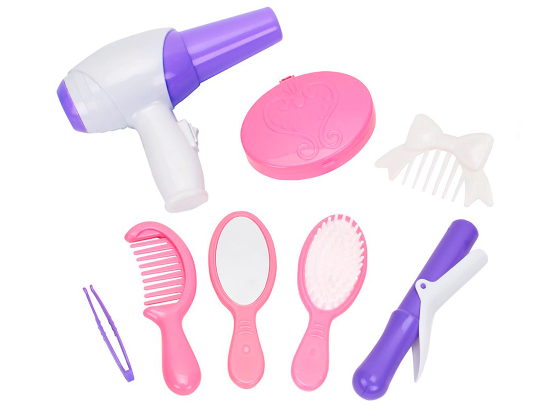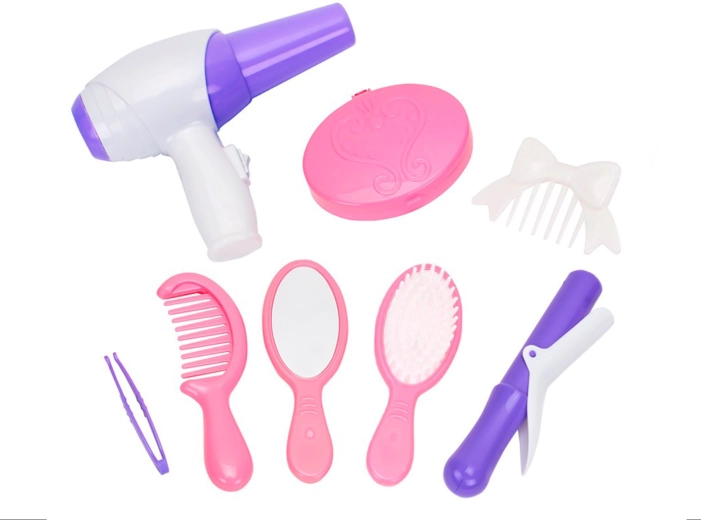 Set de coiffeur pour enfants en valisette – ensemble rose de 8 pièces