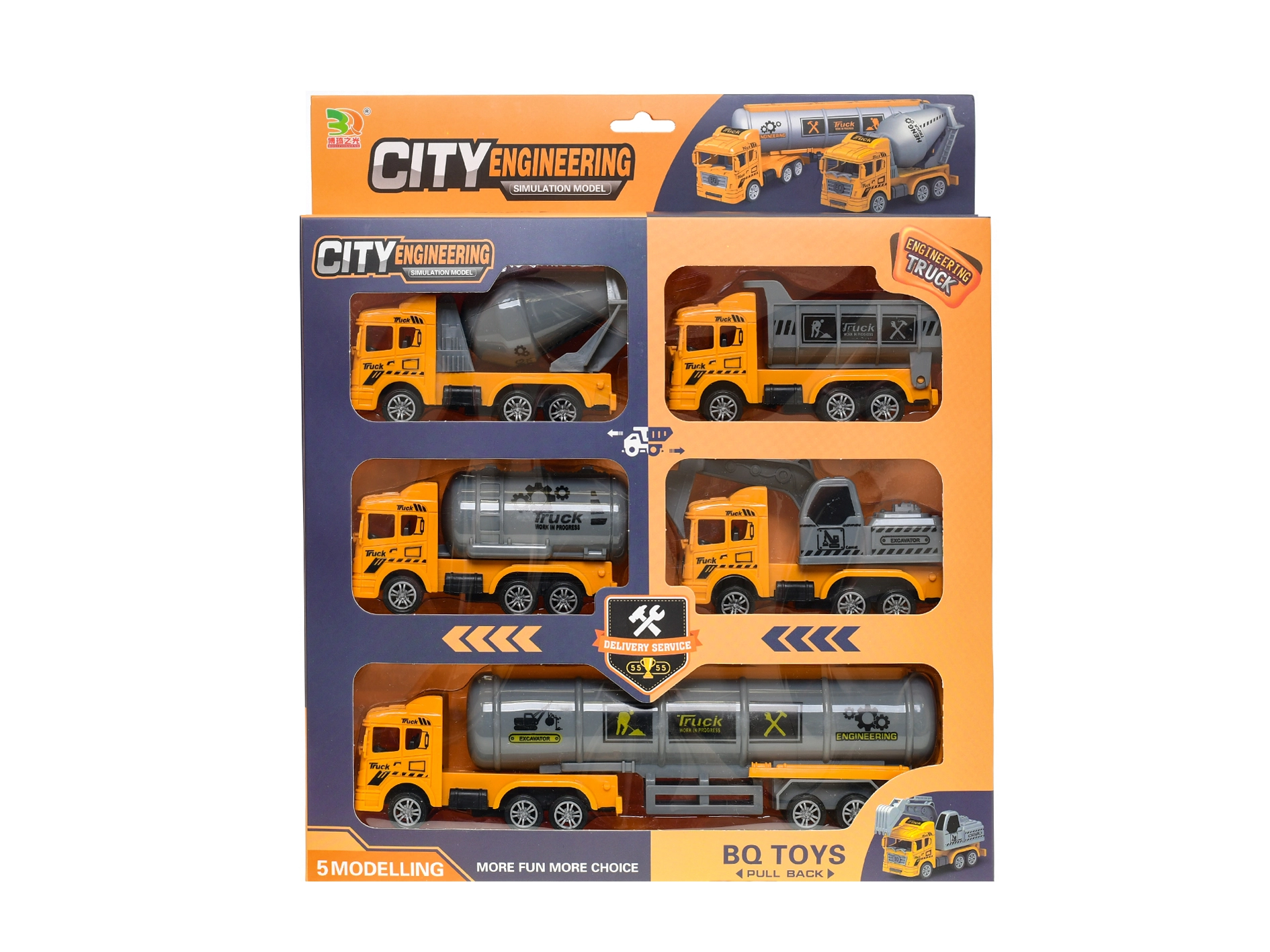 Ensemble de véhicules de chantier à rétrofriction avec marche arrière, 5 pièces