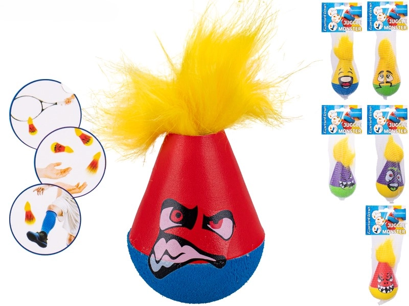 La balle est disponible en six variantes amusantes : rouge souriant, rouge fâché, avec moustache, souriant, violet étonné et violet souriant. Chaque « monstre » a son propre caractère, ce qui permet aux enfants de choisir facilement leur compagnon préféré pour lancer et jongler. Emballage en filet pour faciliter le transport et le rangement.