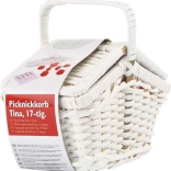 Le panier en osier blanc offre un espace de rangement pour l'ensemble du set, avec une structure solide et un élément décoratif offrant une authentique sensation de pique-nique.
