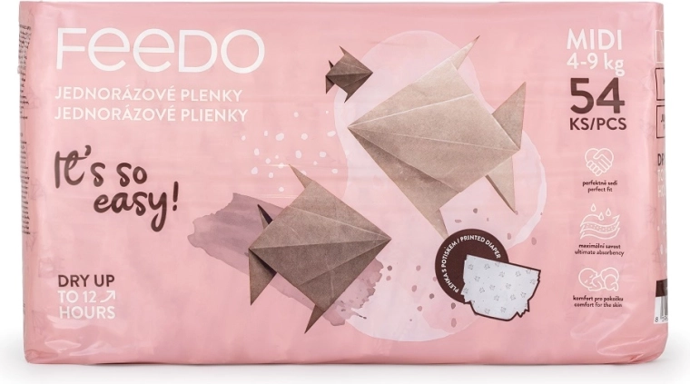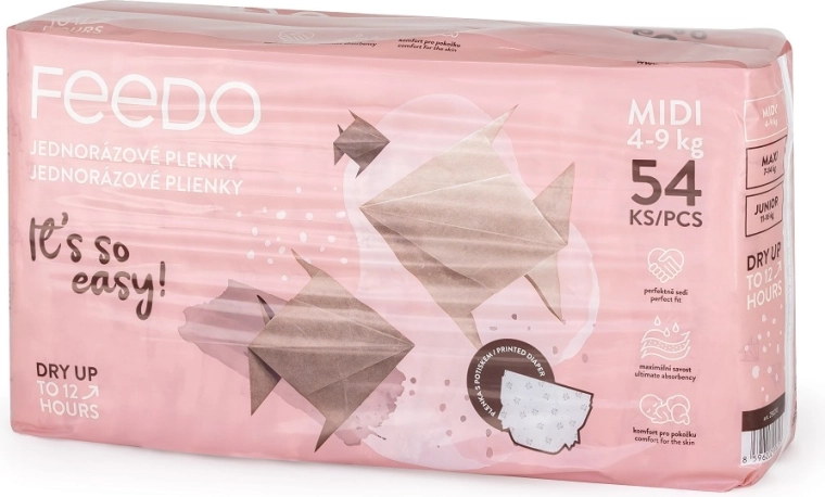 Couches jetables pour enfants FEEDO Midi 3 (4–9 kg), 54 pcs
