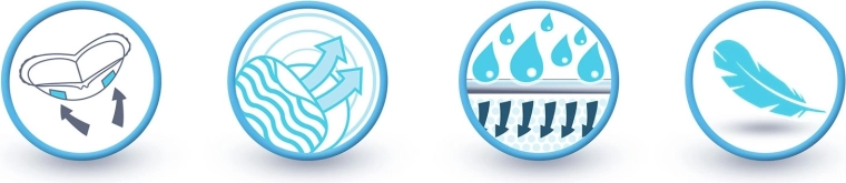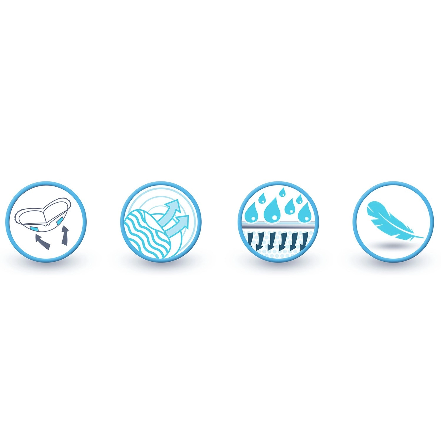 • Ultra absorption : absorption rapide de l’humidité et sensation de sécheresse toute la journée.