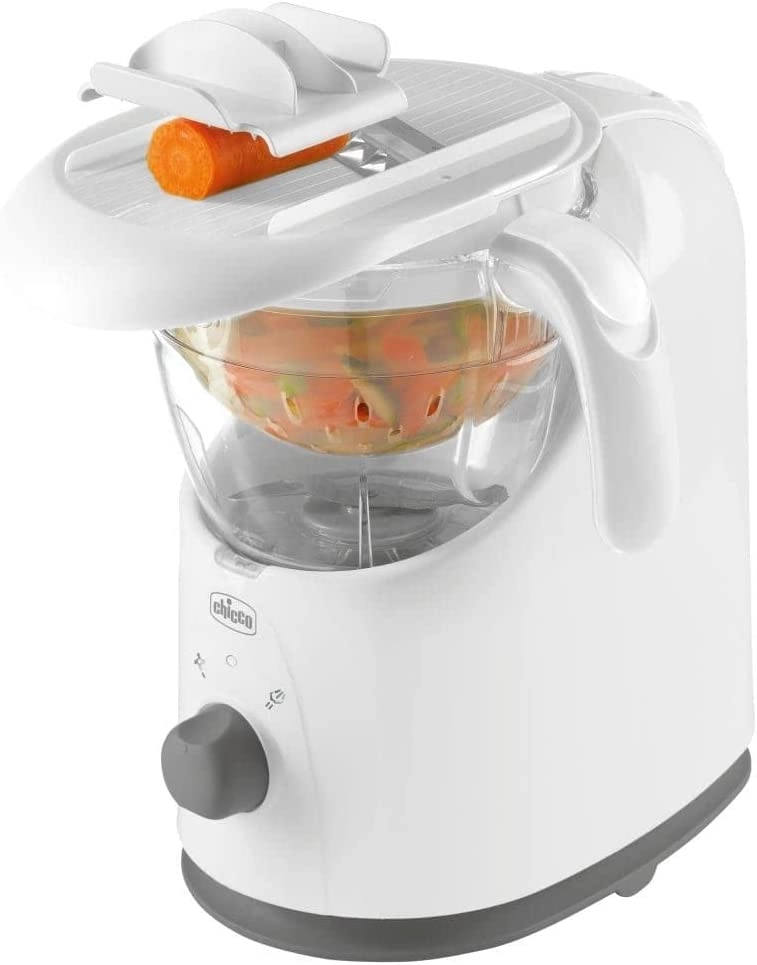 Vous voulez préparer rapidement des repas sains pour bébé sans désordre ? Le cuiseur vapeur et mixeur 4-en-1 CHICCO Easy Meal combine râpage, cuisson à la vapeur, mixage et réchauffage en un seul appareil. Grâce à sa râpe pratique, à la distribution efficace de la vapeur et à ses lames tranchantes en acier inoxydable, vous réalisez des purées parfaites en un rien de temps.