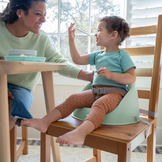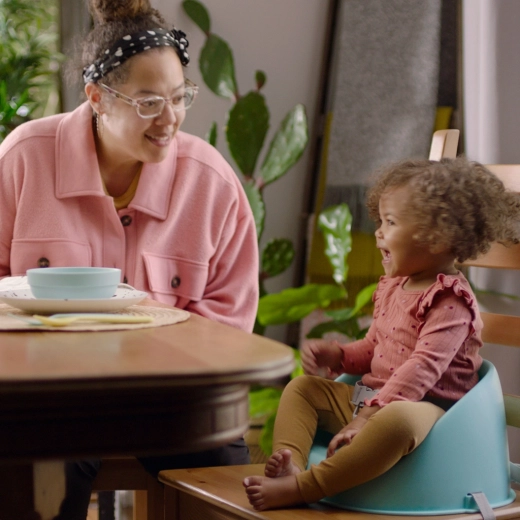 Le harnais de sécurité 3 points réglable maintient l’enfant dans une position confortable et stable pendant les repas et les jeux à table.