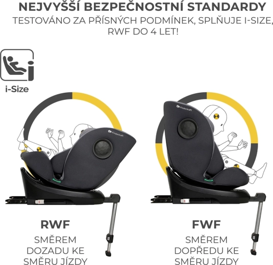 Le siège auto pivotant KINDERKRAFT I-360 i-Size pour une taille d’enfant de 40–150 cm offre une sécurité et un confort maximaux dès la naissance jusqu’à environ 12 ans. Il propose le dos à la route (RWF) jusqu’à 4 ans, un système pivotant à 360° pour installer facilement l’enfant, l’ISOFIX avec indicateurs de bonne installation et une jambe de stabilisation. La protection est renforcée par H-GUARD et le SIDE PROTECT SYSTEM+, tandis que l’appui-tête à 12 positions, 5 inclinaisons et les inserts doux en mousse à mémoire de forme assurent le confort à chaque trajet.